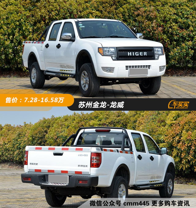 小编你逗我玩吧,这不是刚才的卡威K1么,呵呵龙威的外观造型的确和卡威K1比较像,毕竟大家都是对福特F-150有所借鉴,不过相比之下,龙威则显得朴实沉稳一点,5585×1720×1790mm的车身尺寸在三辆车中算是比较苗条的了。