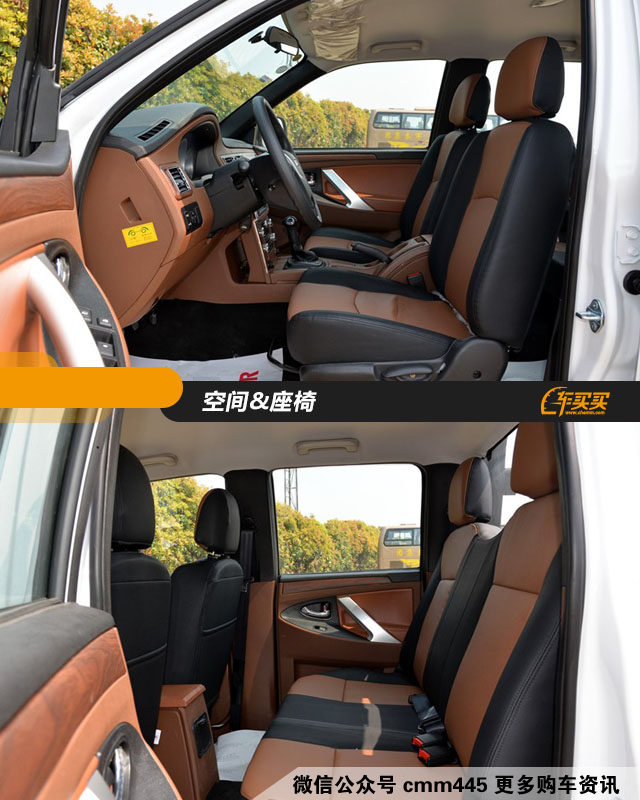 3380mm的轴距数据上并不是很出色,180cm的体验者前后排头部空间为一拳,腿部空间也有一拳的表现还是可以让人接受的,1835*1460*480的货箱尺寸也足够日常使用,动力提供2.4L汽油机或者2.8T柴油机的选择,而且还配备4挡自动或者5挡AMT的自动变速器,这也是龙威的一大亮点。