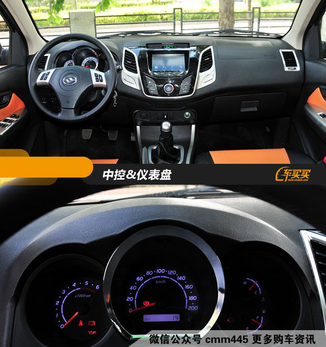 中控台造型依然是沿用了老款车型的样式,功能布局合理,使用起来很方便,黑棕双色的搭配,加上仿木纹饰板的搭配,很上档次,值得表扬的是,龙威配备的是自动空调,但是让人吐槽的是居然连安全气囊都不配备,实在是不太厚道啊。