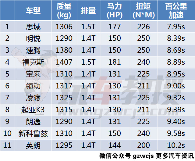 今天,教授就来说一说,在合资品牌中,10来万的紧凑型带涡轮增压发动机的轿车,在百公里加速的成绩排行。
