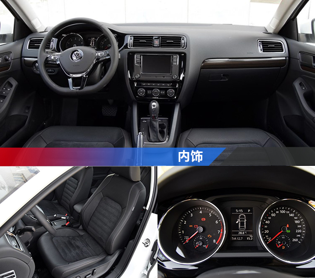 1.4T的版本,全系配置非常之齐全,胎压监测,无钥匙启动与进入,车身ESP稳定系统,后排出风口应有尽有。内饰则更新了许多MQB风格的不见,炮筒式仪表盘比以前更加运动,但中控台面板的多媒体系统分辨率低,缺乏档次。