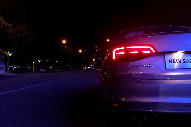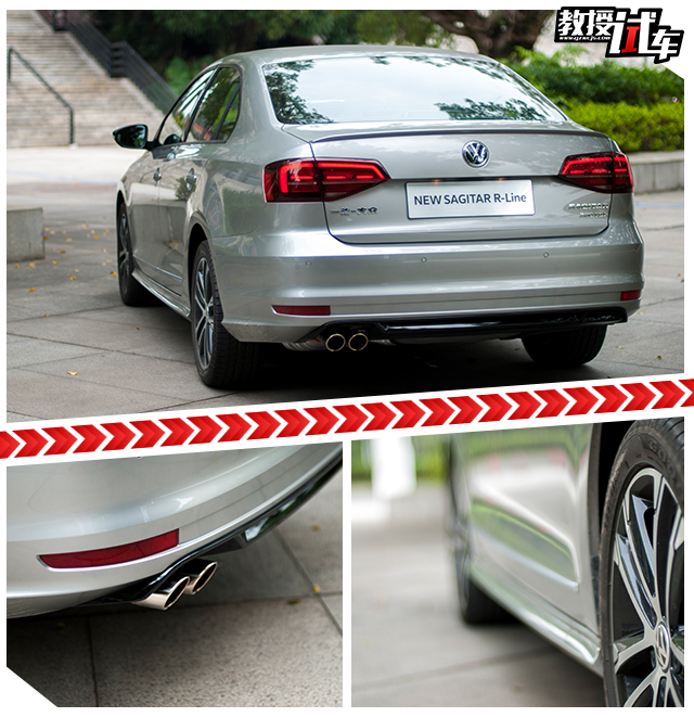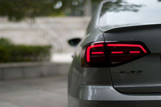 整辆速腾R-Line的外观造型,最吸引教授的,也是教授认为最能够体现R-Line价值的地方,就是这辆车的尾部,教授从停车场提车的时候,第一眼看到这辆速腾R-Line,就是从车后45度角看到这迷人的尾部,真的有一丝神魂颠倒的感觉。