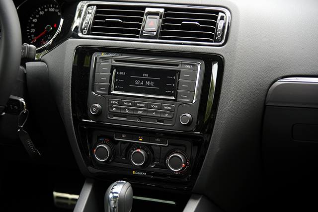中控台是标准的大众样式,简洁易用,红色的按键背光灯在晚上显得十分醒目,多媒体系统虽然没有触摸大屏幕,但是支持USB和蓝牙,连接U盘或手机播放音乐都很方便。下方的空调操作区域同样是简洁明了,教授认为,这样的旋钮操作方式有利于驾驶员的盲操作,特别是一人单独驾驶车辆的时候,盲操作就显得尤其重要。