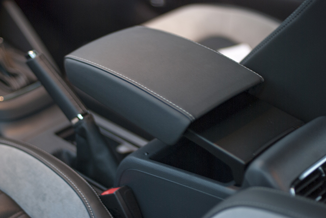 调整完座椅和方向盘之后,教授很习惯性的把右手靠在了中央扶手箱上,可以高低和前后调节的设计非常好用,总是能够找到一个合适的角度,非常舒服,至于扶手箱会不会与手刹拉杆冲突,坦白说的话,某种情况下的确是存在的,但是由于教授坐姿偏高,将扶手箱调节至最高并拉到最前的位置,这种情况下,两者是不会发生冲突的。