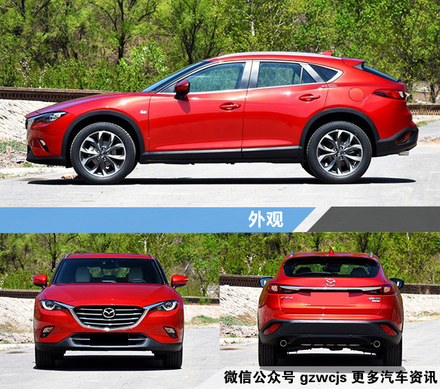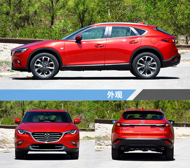 马自达CX-4的外观非常独特,感觉就像一辆Coupe掀背车,但它却是一辆实实在在的SUV,基于CX-5平台而来。外观设计上采用了马自达的家族式风格,从远处看,整个前脸很像昂克赛拉,尾部后车窗部分非常扁平,有着浓郁的跨界格调,不知道大家是否喜欢,反正教授已经着迷。
