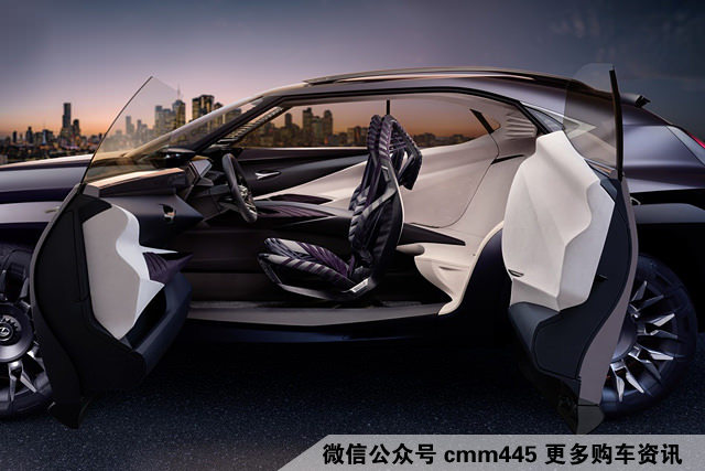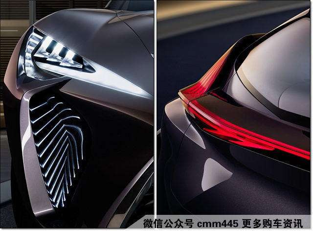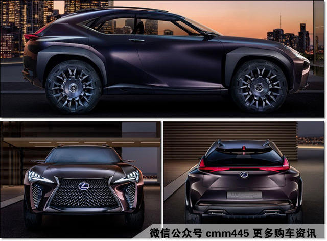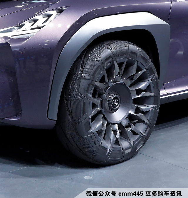 配合如此浮夸的车胎设计,雷克萨斯UX概念车也相得益彰。这台跨界SUV不仅车门采用少见的对开式设计,同时全车外观有着强烈“肌肉感”。棱角分明的折线,车头张狂的纺锤型水箱护罩、飞镖造型灯组、车侧则是透过细长的摄影镜头后视镜部件组成。车尾则使用紧凑Coupe车顶线条设计感十足。