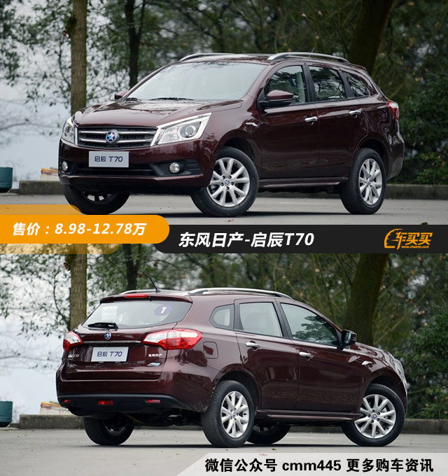 启辰T70的发动机为1.6L 121马力 L4 和 2.0L 144马力 L4,匹配5挡手动、6挡手动和CVT变速箱。T70的特点就很鲜明了,使用了老款逍客的平台,自身设计也没有什么亮点,配置也较为寒酸,但是不得不说T70的质量在同级别中处于领先地位,另外油耗,变速箱的平顺性,都在同级别中处于上游的水平,如果不嫌弃它是拉皮车,T70是一款不错的家用买菜车。
