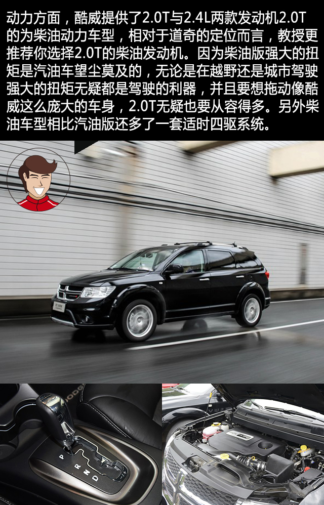 2、国内的柴油油品不好,柴油车受众面不够广,而2.4L汽油机动力相对于酷威的车重而言又稍显单薄。