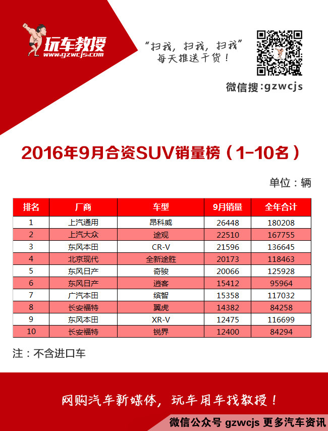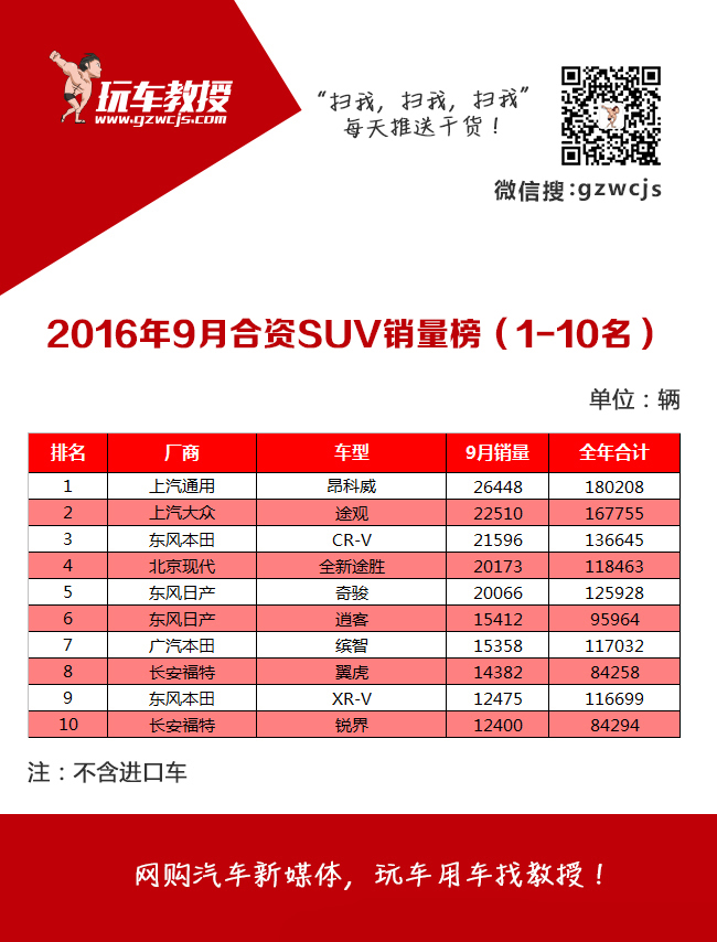 9月份合资SUV前十名...