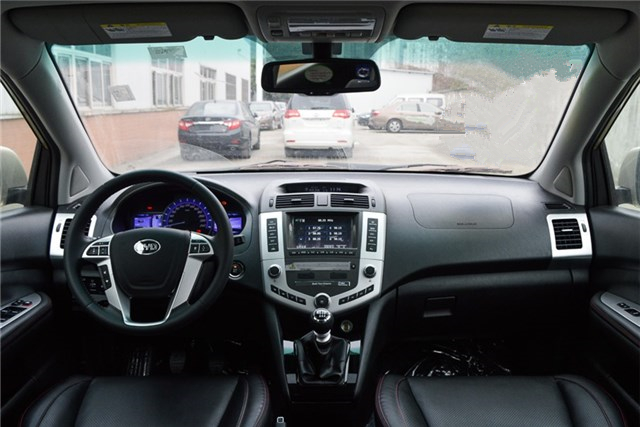 内饰方面,以现今的眼光去看S6的内饰有些落伍,内饰设计线条有些复杂,给人一种凌乱的感觉。好在配置一向是比亚迪的强项,以指导价10.29万的1.5T 7座版本为例,6气囊、无钥匙进入/启动、天窗、真皮方向盘、导航、自动空调等等实用配置应有尽有,这也是S6畅销多年的一大原因。