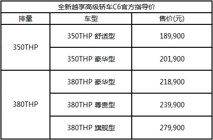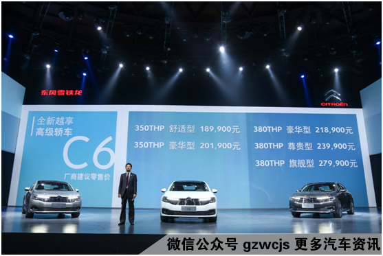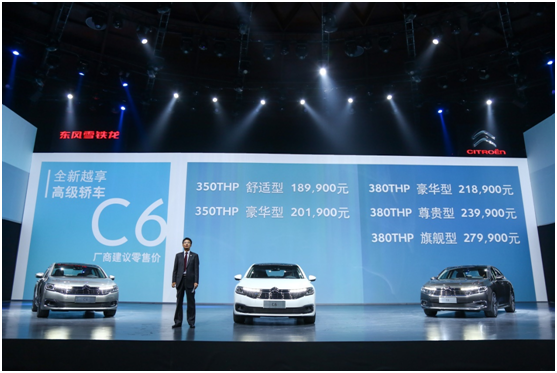 10月17日,东风雪铁龙全新越享高级轿车C6在北京正式上市。作为新一代法系旗舰,C6将引领雪铁龙品牌进入一个新高度,更将为用户创造全新的极致优越的全方位舒适驾乘体验。此次上市的东风雪铁龙C6配备350THP和380THP两款动力系统,匹配6速手自一体变速箱,共计4个级别,5款车型,售价为18.99万元-27.99万元。