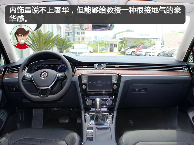 内饰的设计虽然低调,但商务气息特别浓,中控台采用大面积的软质搪塑材料,质感十分好,教授最喜欢的莫过于内饰中加入了实木饰板,提升了整个车厢的格调,带来越级的体验。仪表盘为液晶的,功能强大,8英寸大屏搭载了MIB多媒体系统,操作简单。内饰虽说不上奢华,但能够给教授一种很接地气的豪华感。