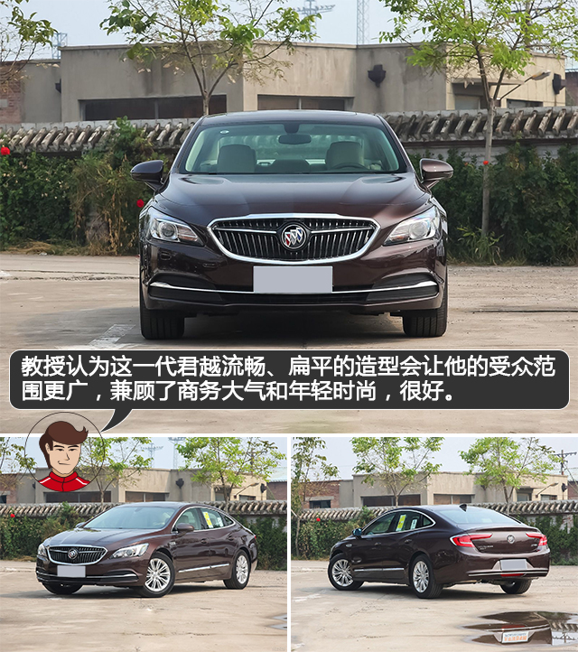 新君越的造型明显变得更加年轻化的低矮扁平了,摆脱了旧款车型臃肿的“大叔车”造型,飞翼式的格栅辨识度很高,亮黑的底色配上镀铬两条,质感很高档。整体来说,教授认为这一代君越流畅、扁平的造型会让他的受众范围更广,兼顾了商务大气和年轻时尚,很好。