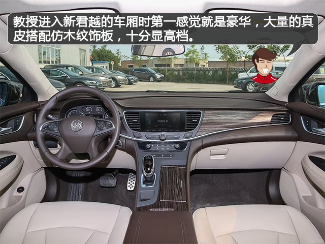 简洁明了的内饰采用怀抱式的设计,干练之余线条十分流畅。教授进入新君越的车厢时第一感觉就是豪华,大量的真皮搭配仿木纹饰板,十分显高档。多媒体系统也支持安吉星、Carplay和Carlife功能,十分丰富。