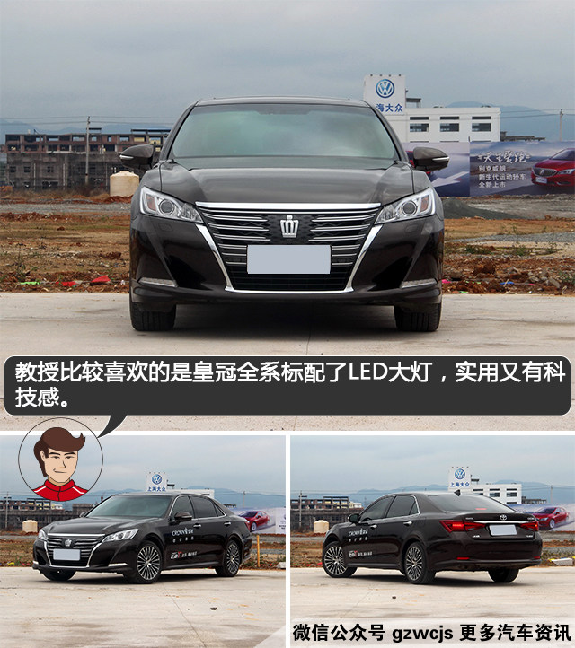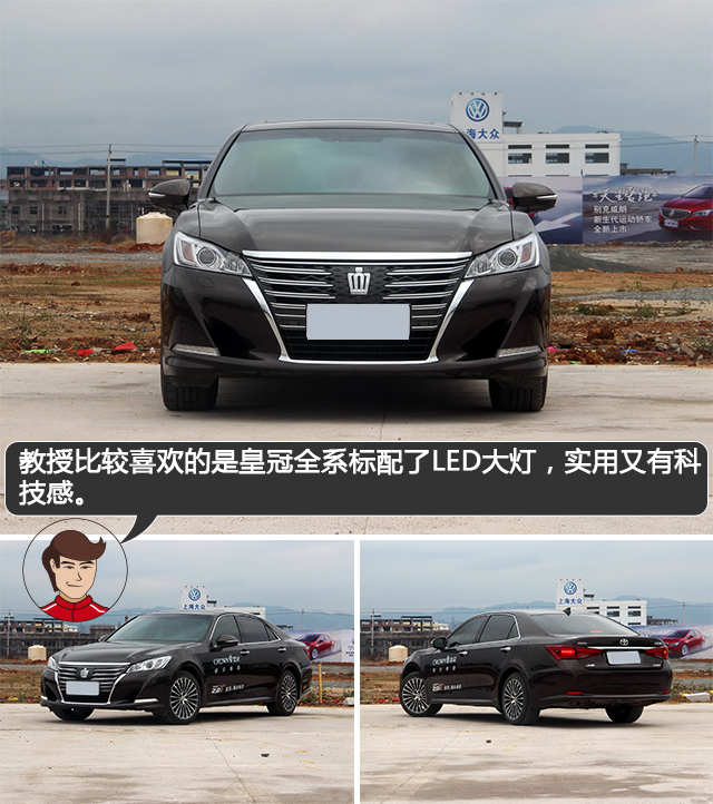 外观上,皇冠简洁的车身线条和饱满的车身造型,让皇冠看起来十分稳重,而前脸巨大的倒梯形进气格栅又让皇冠不失一点年轻的冲击力。教授比较喜欢的是皇冠全系标配了LED大灯,实用又有科技感。
