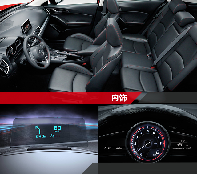 昂克赛拉的内饰一样充满惊喜,设计路线仍以简洁为主,内饰采用了碳纤维材质,再配上炮筒式中置仪表盘,凸显了整个车厢满满的运动风格,狠狠的激发了用户的驾控欲望。无论是三厢版还是两厢版均配有抬头显示,不过只有顶配才配有,视觉体验一目了然,给到驾驶者更充足的操控自信。另外,值得肯定的是昂克赛拉全系都标配了ESP等安全主动配置。但作为运动定位的昂克赛拉,整体空间都要逊色于其它主流家用车,或许这正是马自达特立独行的代价吧。
