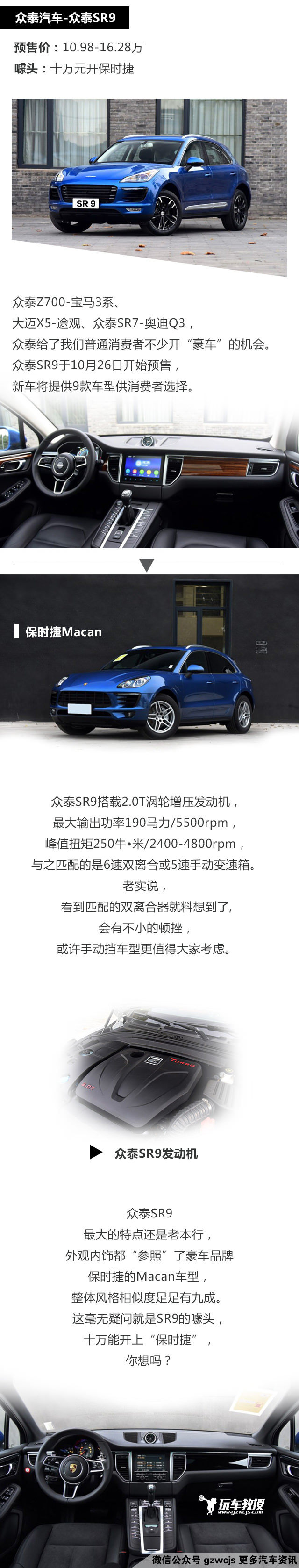 众泰SR9的保时捷外观和内饰,确实十分吸引人,肯定不少人会问教授这台车值不值得买,教授也还没拿到实车去评测还难去断定,不过按照教授的性格来说,教授建议中小城市可以考虑下入手,而大城市的话买山寨保时捷,也太那个了吧…就好比如一个女士拎着山寨LV包进入高端酒会,那可多尴尬啊!