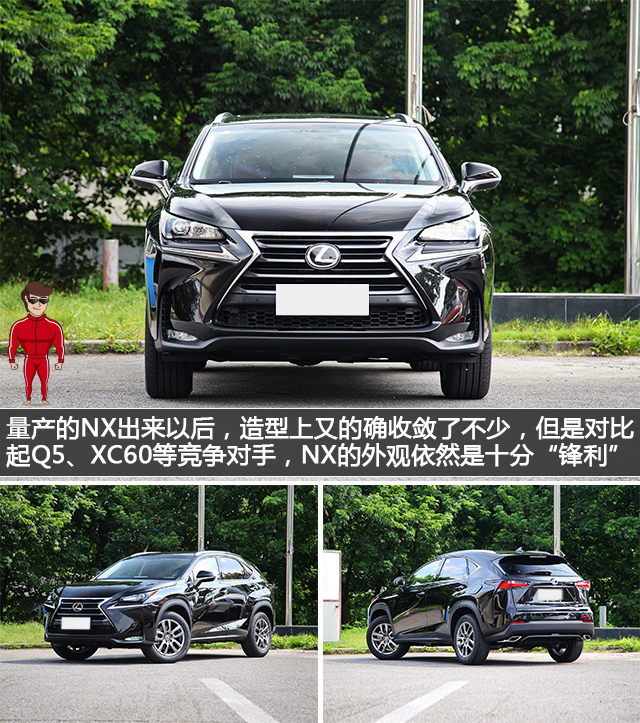在最初推出LF-NX概念车的时候,很多人都认为这辆车的线条实在过于锋利,表示不能接受。而量产的NX出来以后,造型上又的确收敛了不少,但是对比起Q5、XC60等竞争对手,NX的外观依然是十分“锋利”的。教授也认为这没什么不好,起码放在云云车海中,NX绝对是最显眼的一个。