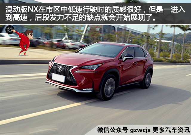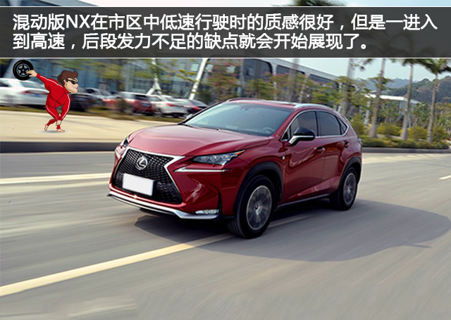 动力方面,NX有汽油版和混合动力版两大版本,车型后带“h”的就是混合动力版本的,在动力上,教授最欣赏的还是那种细腻、平顺的动力输出,即使在不同的动力间切换也没有明显的感觉。混动版NX在市区中低速行驶时的质感很好,但是一进入到高速,后段发力不足的缺点就会开始展现了。