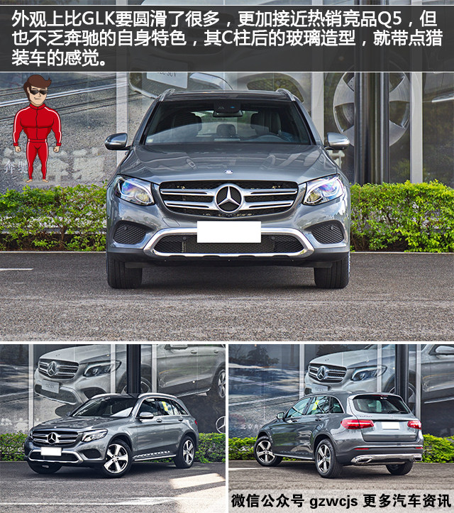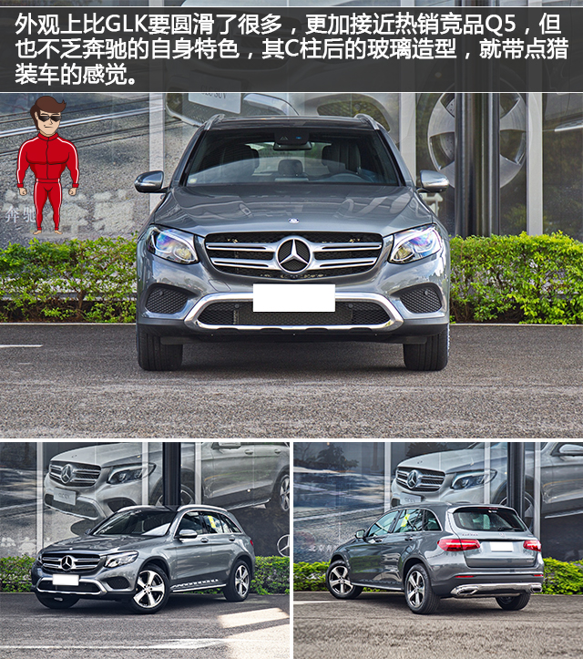 在国内市场,GLC实际上是之前以3.0L V6为主打的GLK的继任者,但GLC主打的则是2.0T涡轮发动机,赶上了涡轮化的潮流。外观上比GLK要圆滑了很多,更加接近热销竞品Q5,但也不乏奔驰的自身特色,其C柱后的玻璃造型,就带点猎装车的感觉。