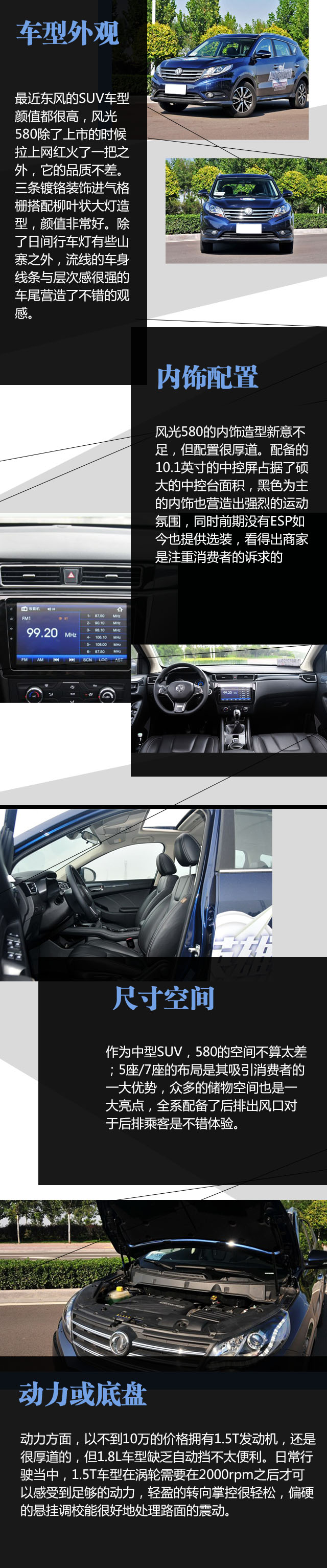 教授总结:今天教授所介绍的这几款SUV真的不差,众泰T600与东风580都是属于目前市场上的爆款车型,受到很多消费者的认可,瑞虎5虽然被自家的瑞虎7转移了不少消费者的目光,但瑞虎家族长期的良好口碑使得它仍然热度不减,最后的猎豹CS10虽然不声不响,但销量一直非常稳定,总体来说这几款车型都是很值得购买的。
