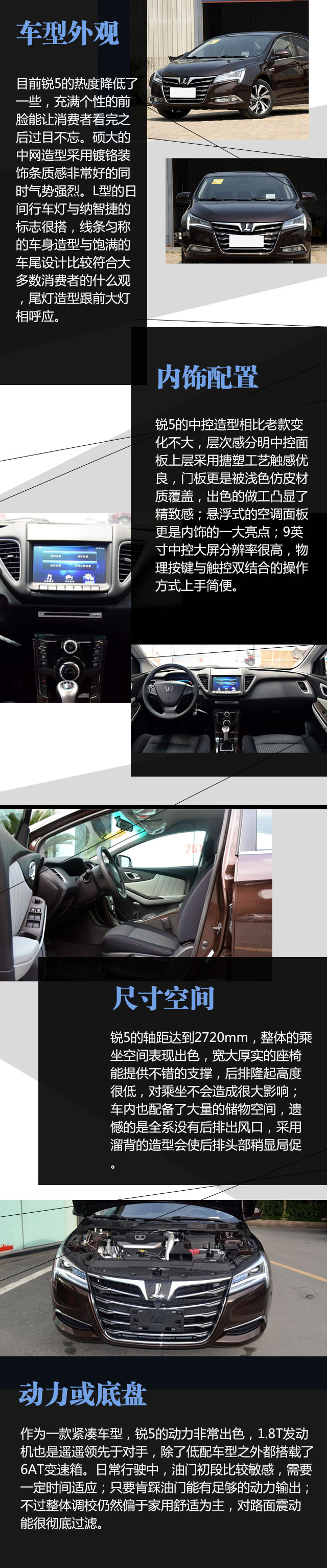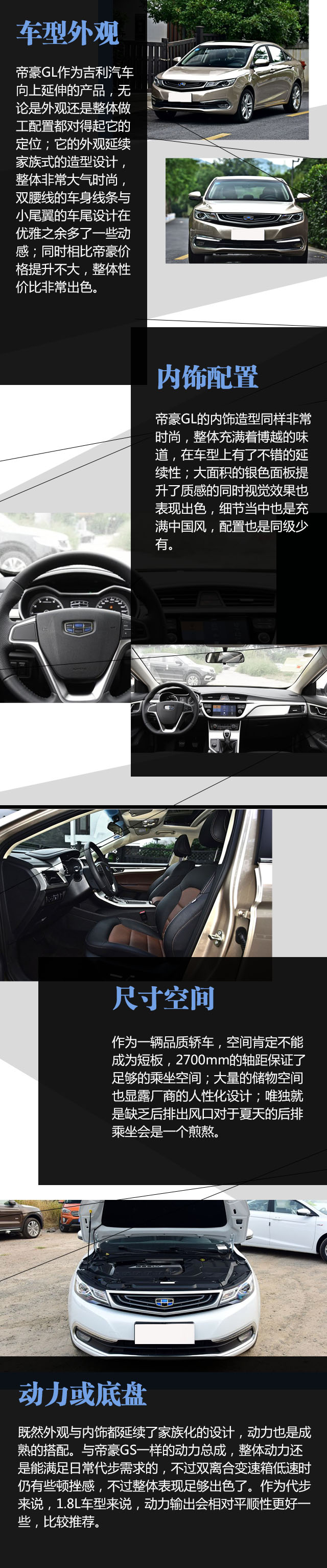 教授总结:今天教授所推荐的这几款车型都是这几年非常热销的自主优质车型,帝豪GL应该是帝豪的升级版,是吉利汽车向上的实力车型。传祺GA3S视界则拥有非常时尚年轻的造型,同时底盘调校非常出色;锐5则充满个性但动力非常出色,也是非常值得购买的车型。最后的逸动虽然车型有些落后,但之前却是一直热销的车型,拥有非常不错口碑。