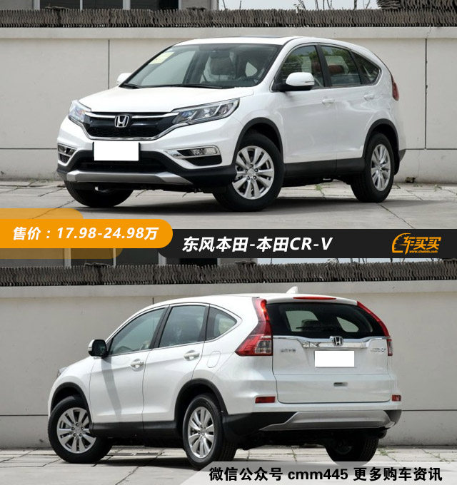 CR-V的动力系统为2.0L 155马力/2.4L 186马力+CVT。CR-V绝对算是国内SUV的先驱了,当时CR-V疯狂加价的时候,途观和翼虎还不知道在那里玩呢。CR-V凭借着非常不错的口碑,一直热销到现在。推荐理由和凯美瑞一样,也是一款非常省心的车子,经常可以看到十多年的CR-V依然在“服役”。