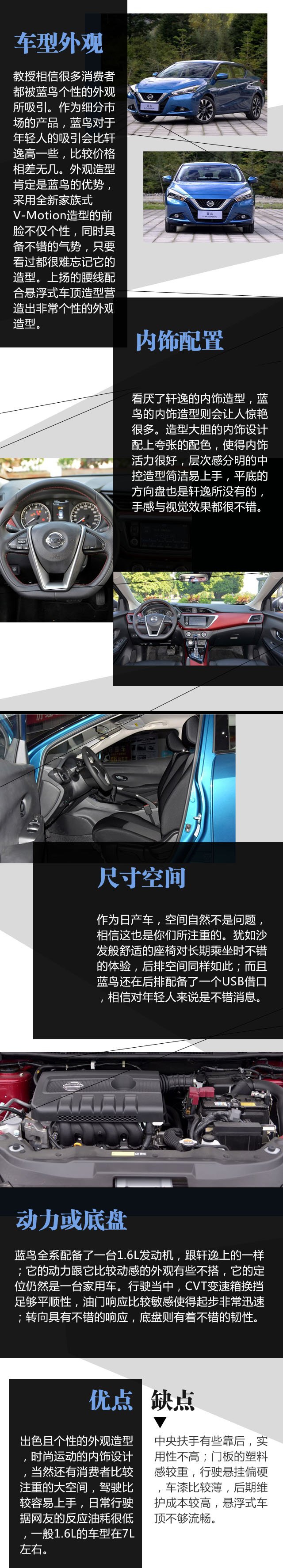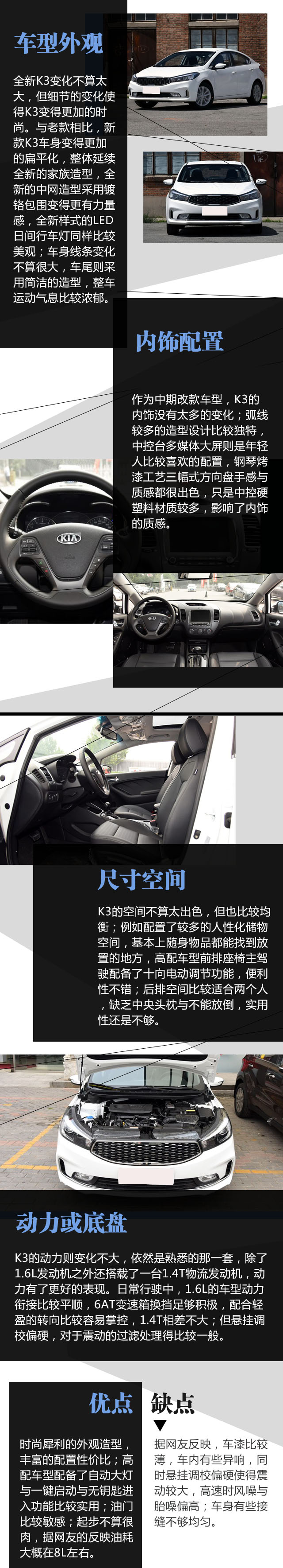 新蓝鸟虽然外观比较个性,但出自日产的它无论性价比还是车内空间都非常出色,配以较便宜的后期保养使得蓝鸟仍有不少追捧的拥趸;最后的K3不仅颜值较高,动力与性价比同样出色,加上韩系车一贯以来都具备一定的市场优惠,很适合年轻人的口味。