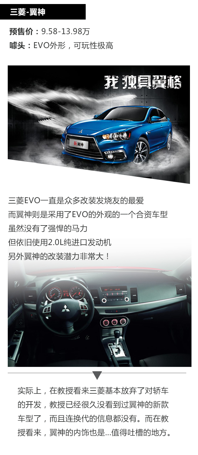 平时看教授写的导购文章已经够多了,但是相信不少人还是选不到自己心仪的好车,这是正常的!市面上的车型选择很多,一般面面俱到的车型价格都很贵,而我国汽车市场主要是集中在30万这个区间内。有不少粉丝对教授的选车口味很感兴趣,所以今天教授决定扒一扒30万以内教授比较喜欢的车型,其实它们都是有一个共通点,那就是...