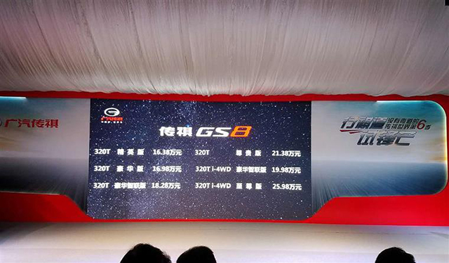 作为传祺品牌高端化路线上继GA8之后的又一款C级高端力作,GS8集“超硬朗霸气外观、大格局七座空间、新视野智能互联、全地形无畏驾控”四大核心价值于一身,创造中国品牌高端突破新高度,为用户呈现大幅超越同级的产品价值。有媒体表示:传祺GS8将是对合资品牌一次最有力的冲击,中国品牌有望首次突破20万价格天花板。