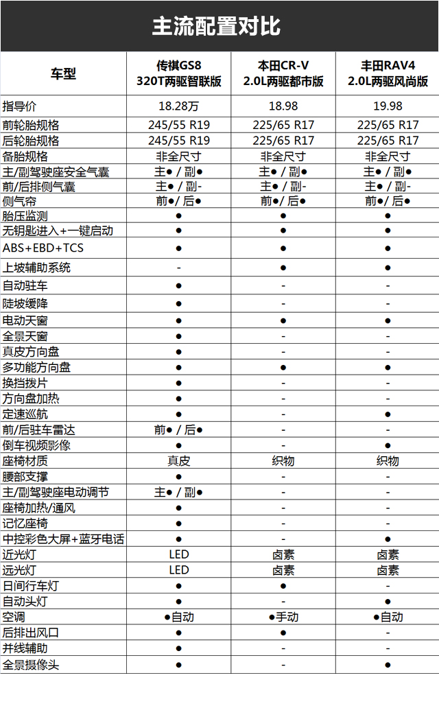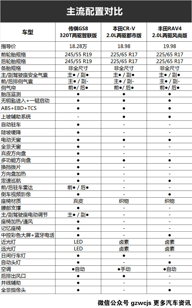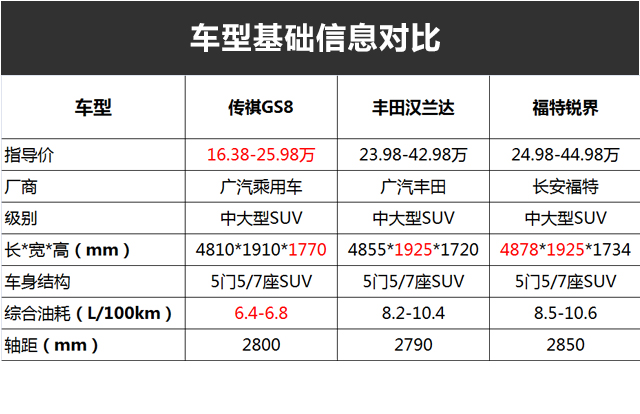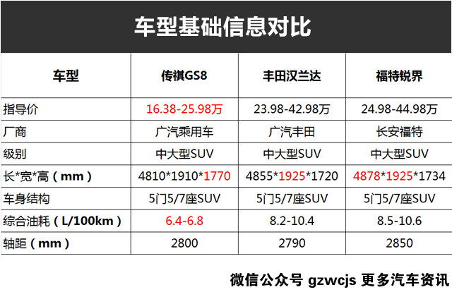 从定位来看,广汽传祺GS8定位在中大型SUV上,直接的竞争对是就是哈弗的H8(卖不起来的车型也不成气候)、长安CS95(还没上市)。其实作为一款旗舰车型,教授更希望将GS8对飙合资车型!既然这样让我们来一场实打实的对比。
