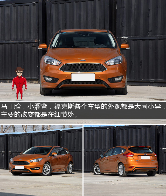 马丁脸,小溜背,福克斯各个车型的外观都是大同小异,主要的改变都是在细节处。修长的头灯造型和重新设计的保险杠,时尚感的确不错。但福克斯的整体造型和福特其他兄弟车系之间仍有较大的同质化现象,缺少一点个性。