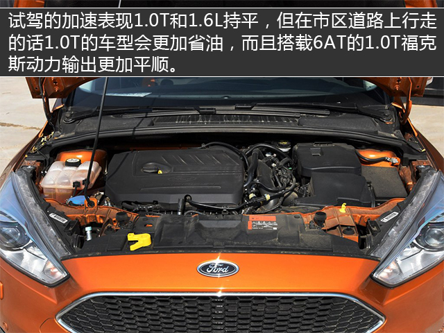 动力方面,1.0T的福克斯和1.6L的动力参数同样是125Ps,但170N·m的扭矩就比1.6L的要大。加速表现的话1.0T和1.6L持平,但在市区道路上行走时1.0T的车型会更加省油,而且搭载6AT的1.0T福克斯动力输出更加平顺。