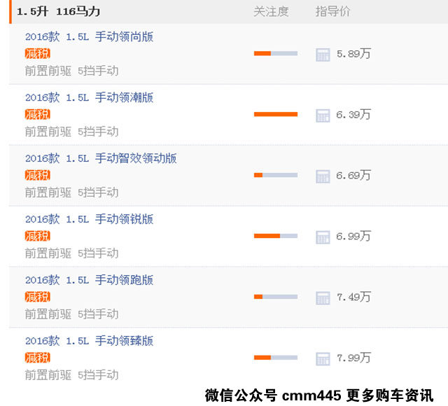 通过图表可以发现,撇开手动挡最低配和自动挡高配,其余的手动挡和自动挡都是相互对应的,价格差了8000元,但是其它配置一样的,所以相当于8000买个一台CVT变速箱,所以我们就以手动挡车型为例子进行分析。