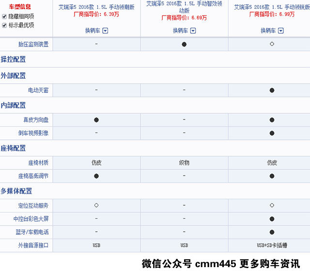 正是因为企业的“实在”,所以才得到了消费者的认可。但是当消费者去选择艾5的时候,会发现密密麻麻一堆车型看起来就头疼。所以小编这次就是要给大家说说艾5哪款车的性价比最高。下面两个图表分别是手动挡车型和自动挡车型。