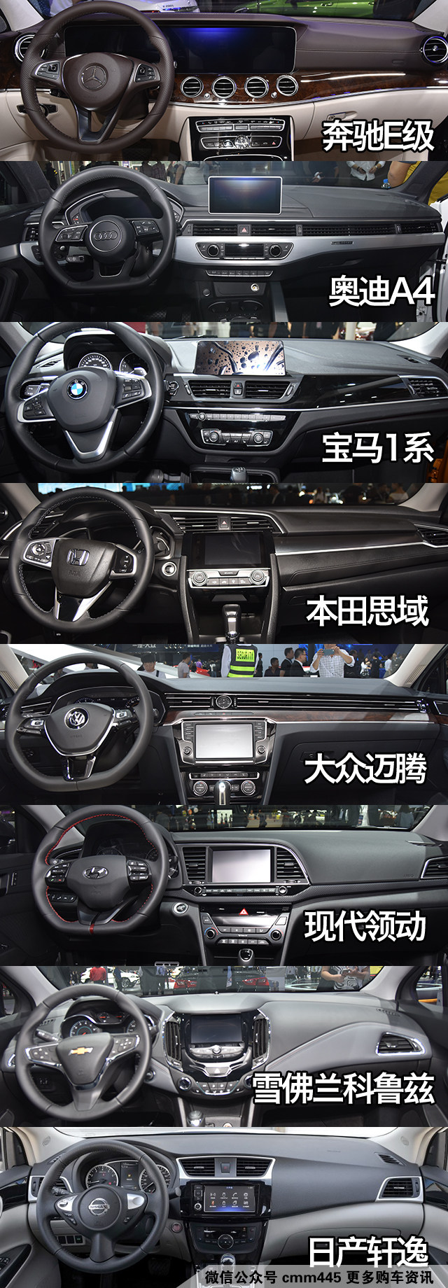 在内饰方面它们都有着很高的造诣,用料上都是同级别的优秀水平。奥迪A4L、宝马1系三厢以及大众迈腾使用的依然是家族式设计,在我们看来反而有点视觉疲劳了,但A4L风格年轻一点,比起旧款好看了不止一点。领动、轩逸、科鲁兹以及思域都是以年轻为主的设计,思域的内饰更是获得了“沃德十佳内饰”的称号,相当不俗。