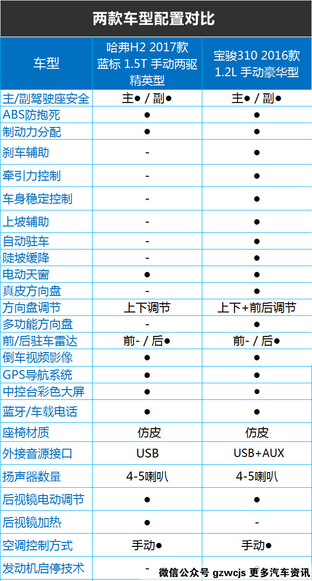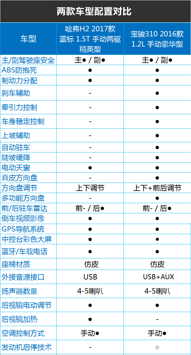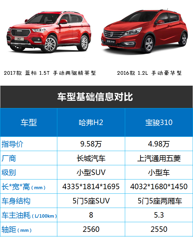 下面教授就拿两款性价比高的自主品牌车型,分别是宝骏310和哈弗H2。