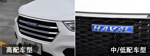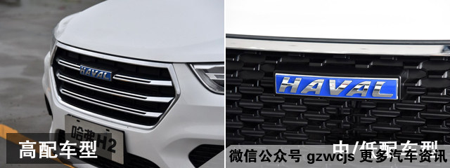 新款也自然采用了最新哈弗车型家族化的设计,选择了低配车型前进气格栅内部结构为类似蜂窝状的全黑设计,而高配车型则采用了粗壮的镀铬装饰条。