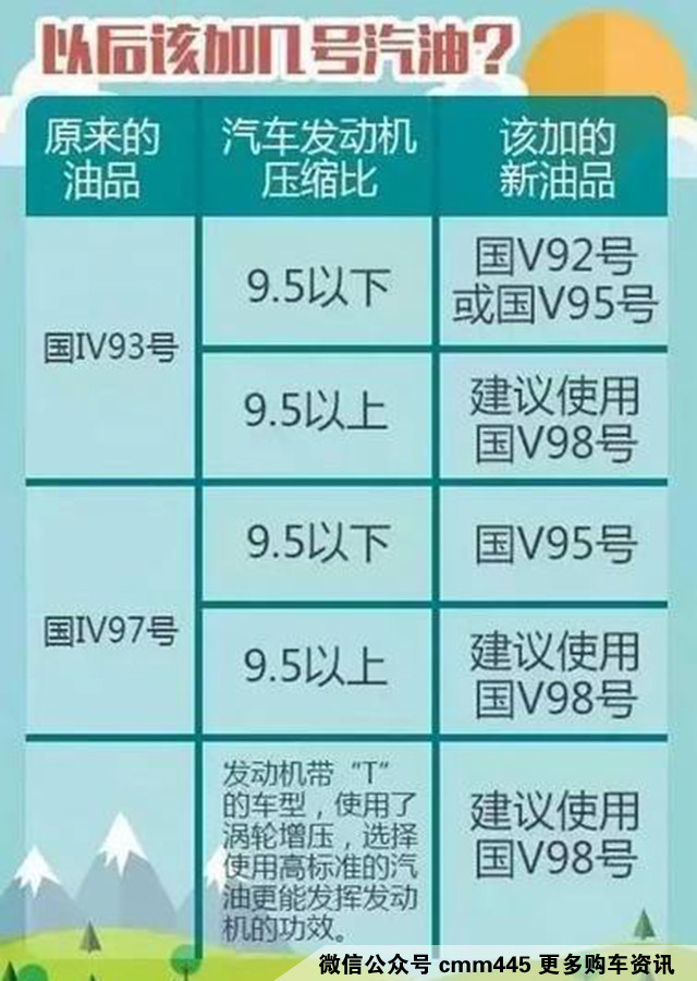 请看以下表格,新车油箱盖都会明确标出可用燃油种类
