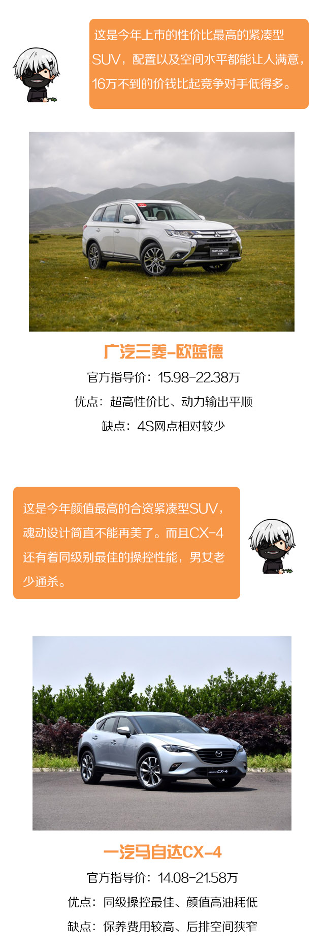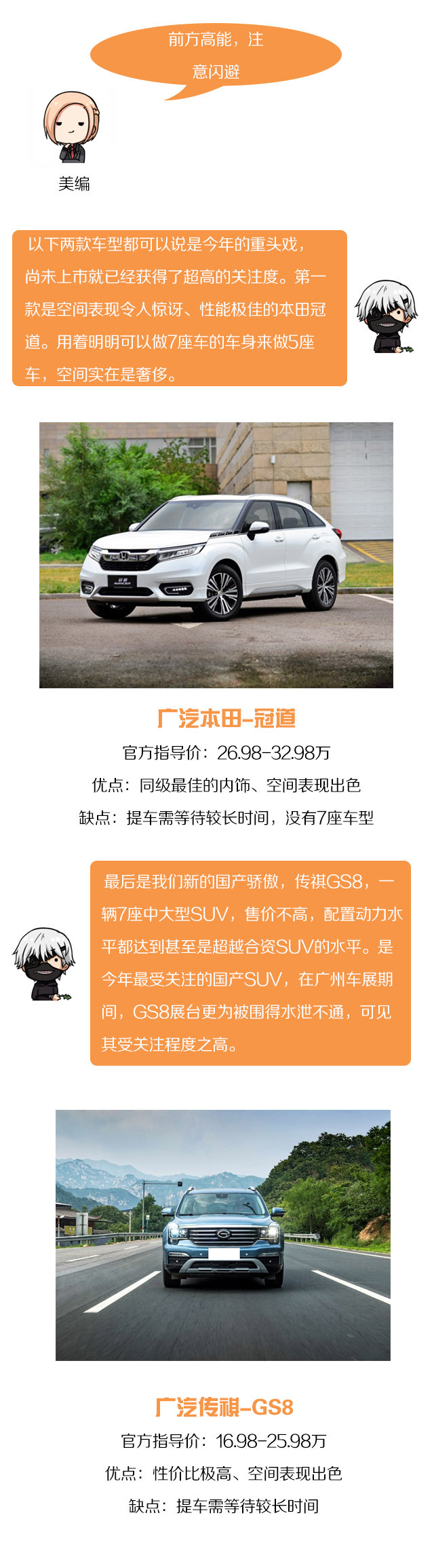 以上就是今年竞争力超强的几款SUV,实力都非常的强以及都是值得买的车型。但若是让小编选择的话,20以内小编会选择传祺GS8,空间表现出色,而且是一款实用的7座车型,配置丰富。30万以内的话选择本田冠道,虽然没有7座车型,但是这样有着更为奢侈的空间表现,内饰做工以及用料表现优秀,有着不错的豪华感。