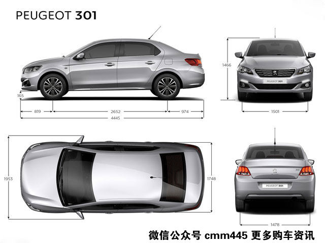 我们在官方拿到了新款标致301尺寸,与现款相比有所增加。