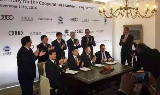 今年11月11日,上汽集团与奥迪集团德国沃尔夫斯堡签署合作框架协议,双方将成立股比对等的合资公司,共同生产和销售奥迪相关车型。