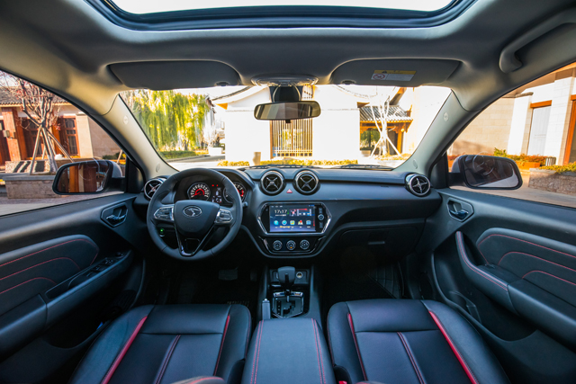 要说东南DX3的外观给人一种惊艳的感觉,那么它的内饰则给人一种惊喜的感觉,扑面而来的是运动和时尚的气息,内饰的设计和布局一点都不比外观差,同样出众,特别是在很多地方都采用了红色缝线的搭配,瞬间提升了内饰的运动感。