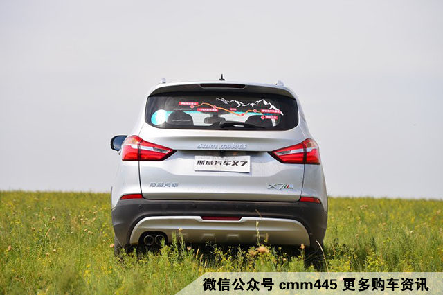 车尾的造型也是相当的“宝马”,同样的LED灯带在夜间辨识率会非常的高,而且造型相当漂亮。连贯尾灯的是斯威汽车的英文标识,加上字体不同的原因,给人的感觉有点累赘。保险杠采用的是双色,下方还有着银色镀铬装饰板,这样在小蹭挂的时候不需要进行补漆。
