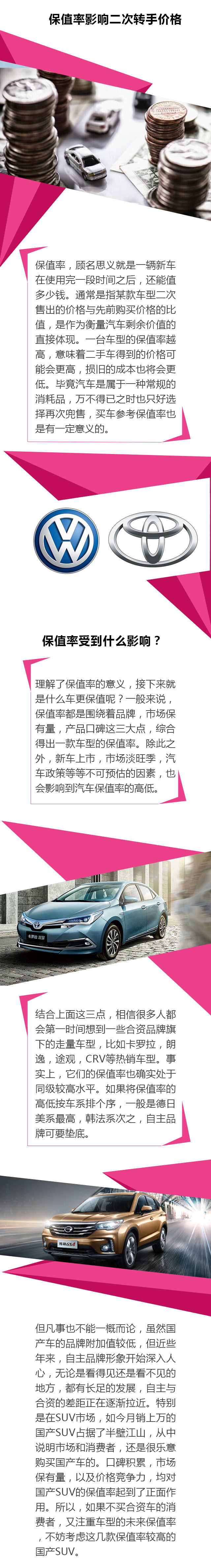 以上推荐的几款国产SUV,只是在保值率较高中比较有代表性的几位。事实上,随着国产SUV整体品质的提升,以及市场保有量的不断扩大,许多有颜值有实力的国产SUV也越来越值钱,告别了以往二市车市场无人问津的尴尬。相比之下,国产轿车仍需加把劲啊。