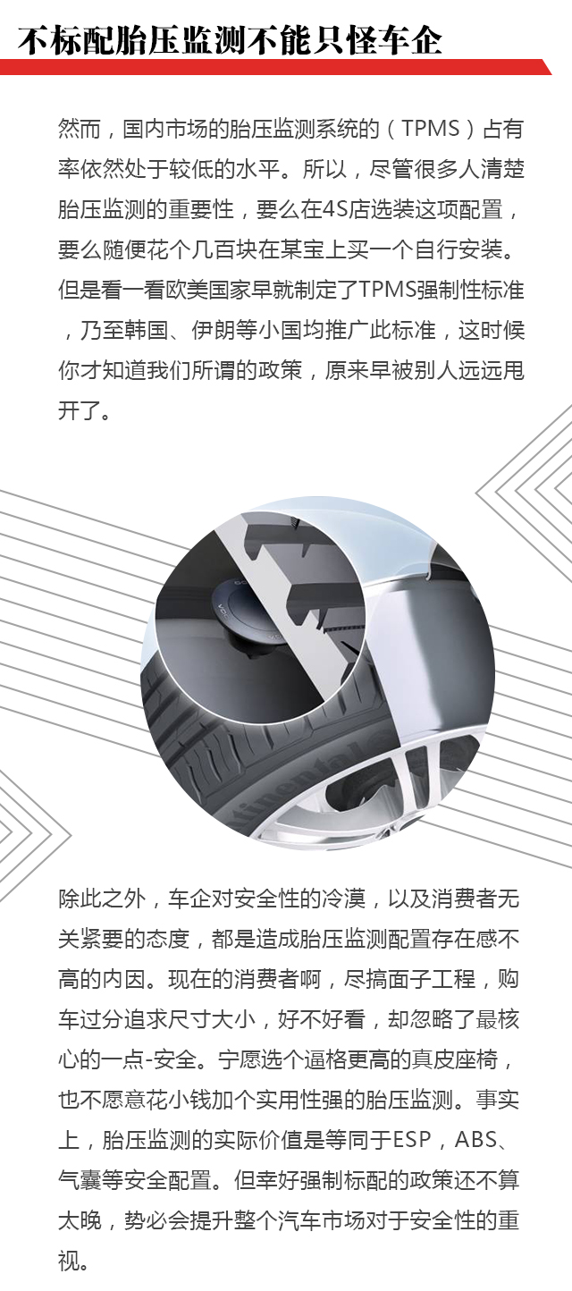 什么意思?此举意味着不久的将来,国内任何一间车企的在售车型都必须强制性标配胎压监测,而不再需要用户掏钱选装或加装。毋庸置疑,这项强制性政策必定是所有消费者喜闻乐见的好事,但好在哪,你搞清楚了吗?