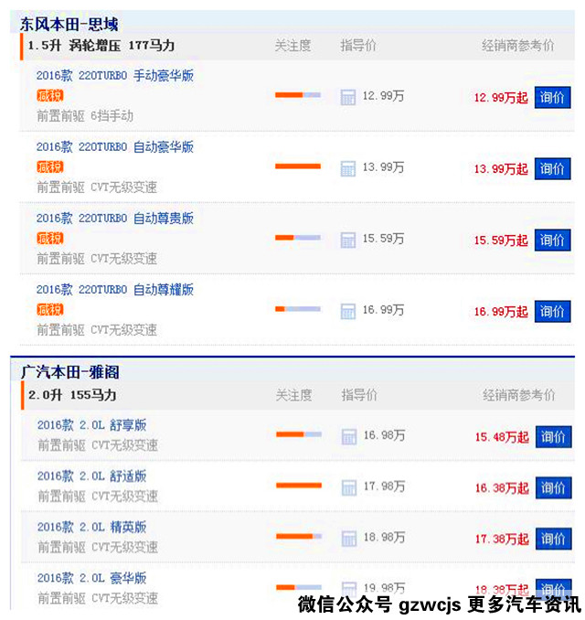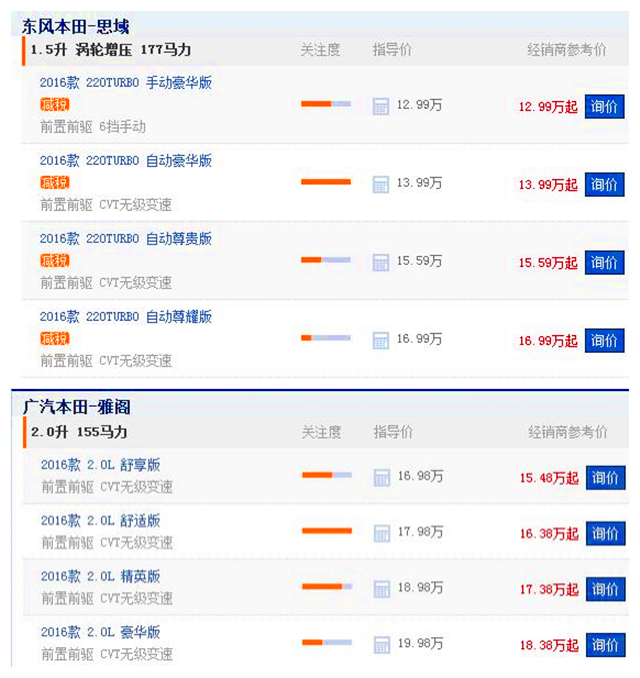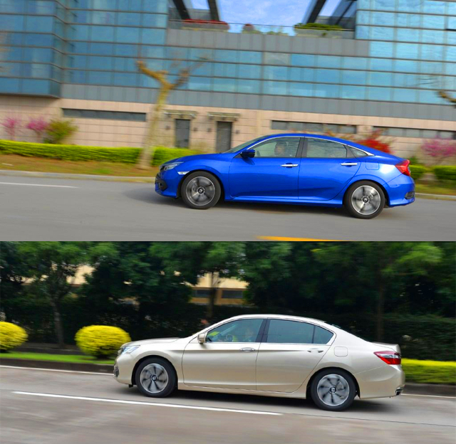 以今年非常火爆的一款紧凑级车和中级车举例,东风本田思域 VS 广汽本田雅阁。
