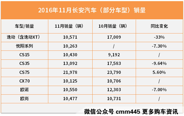 11月,长安汽车旗下已经有8款车型销量过万,这个成绩也相当不错。希望长安汽车加紧对新车型的开发,趁着市场反应热烈推出CS95这样的重量级车型,其次在轿车市场多增加配置乃至像奔奔mini那样提供越级的换挡拨片,应该可以更好刺激目前成熟的消费市场,毕竟作为老牌车企,相信长安的技术储备还是很惊人的。