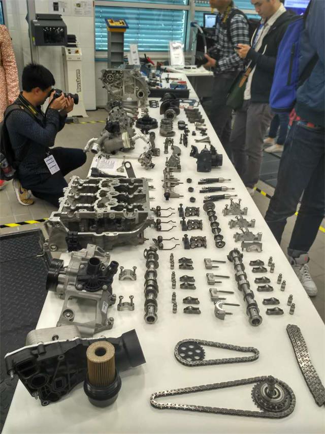 在机电竞赛岗位展示环节,我们看到了宝马全新一代三缸汽油发动机B38。在展台边上陈列着已经分解的发动机零件。