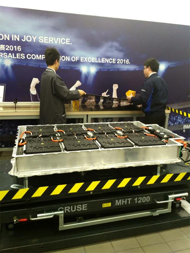 宝马i3电池的模块化设计保证了可以进行局部更换,而由于电池重量和整体设计,要求必须使用专业的工具才能保证电池模块的举升安全。此外,在电池拿出来后,技师需要使用专用的充放电机对新的电池模块进行调试,将其电压值调节到与其它模块一致的水平,以保证电池性能发挥及其使用寿命。